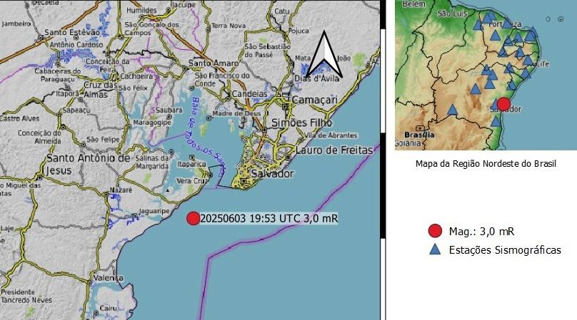 Técnico afirma que a região pode ser considerada uma nova área sísmica; o novo abalo sísmico de magnitude 2,8 mR foi registrado no oceano, a cerca de 10 km de Tairu.