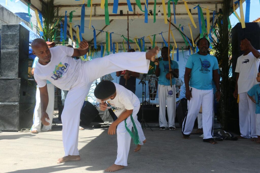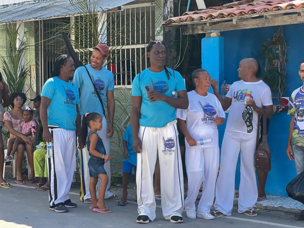 E como não podia faltar, a capoeira marcou presença, o mestre Luiz Preto, que carrega no nome de batismo, a inspiração dos pais dele no Rei do Baião, Luiz Gonzaga, é referência na comunidade e atua com a capoeira desde 1991. Luiz reforçou a importância da integração entre as manifestações culturais da região, “a capoeira representa a minha geração. E ela sempre caminhou junto com o samba de roda e o afoxé. Todos nós estamos representando o passado e o nosso Dois de Julho. Isso é cultura viva.” explica sorridente mestre Luiz Preto.
