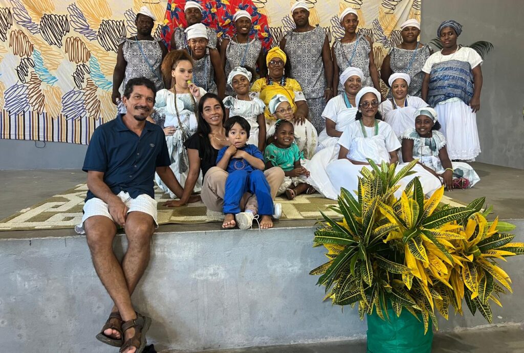 Nazareth Reales e família com o grupo Afoxé Omo Omin – Foto: Gilsimara Cardoso