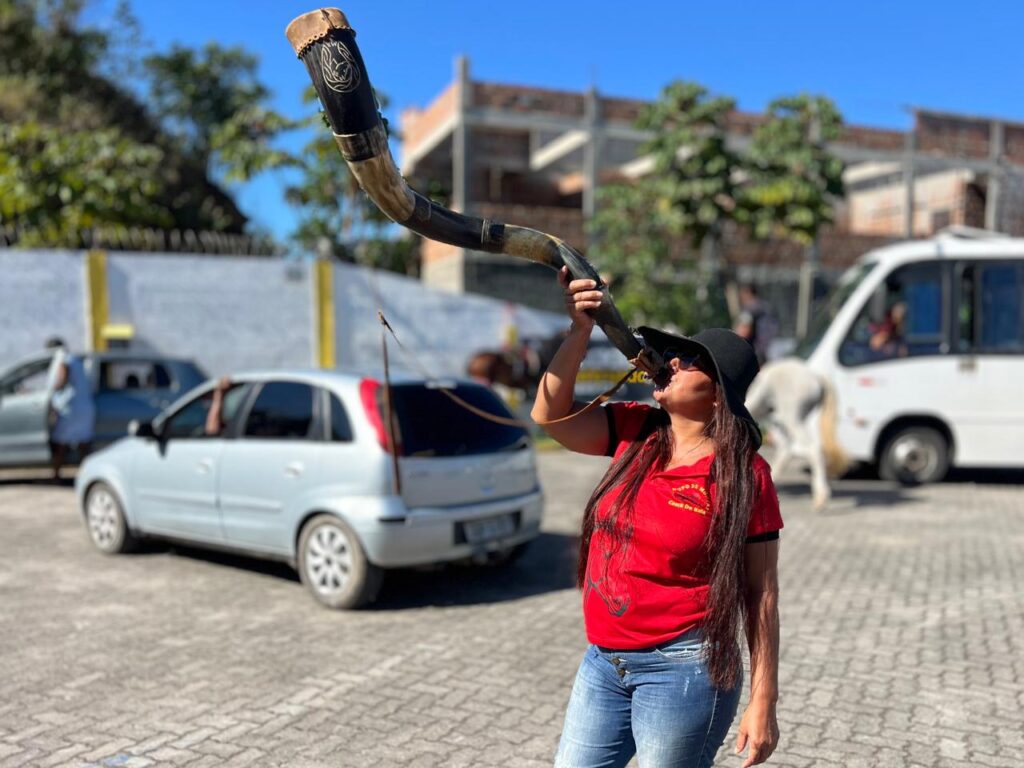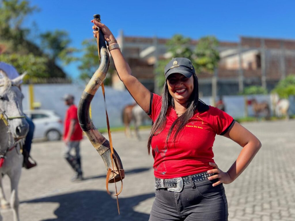 Já Rosineide Brito, que também participou da cavalgada tocando o berrante, contou que aprendeu sozinha, mas influenciada pelo esposo dela Jucimário, trata-se do mesmo Jucimário Silva tio de Valmir “Tenho 11 anos de casada, meu marido é vaqueiro”, afirmou ela, demonstrando como a cultura do vaqueiro atravessa afetos e famílias.