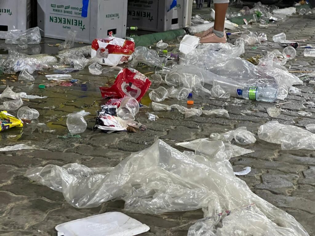 No meio da multidão na festa de aniversário de Emancipação Política de Vera Cruz, havia um grupo de 20 pessoas trabalhando uniformizadas, visivelmente empenhadas em limpar a sujeira que a maioria estava deixando para trás.