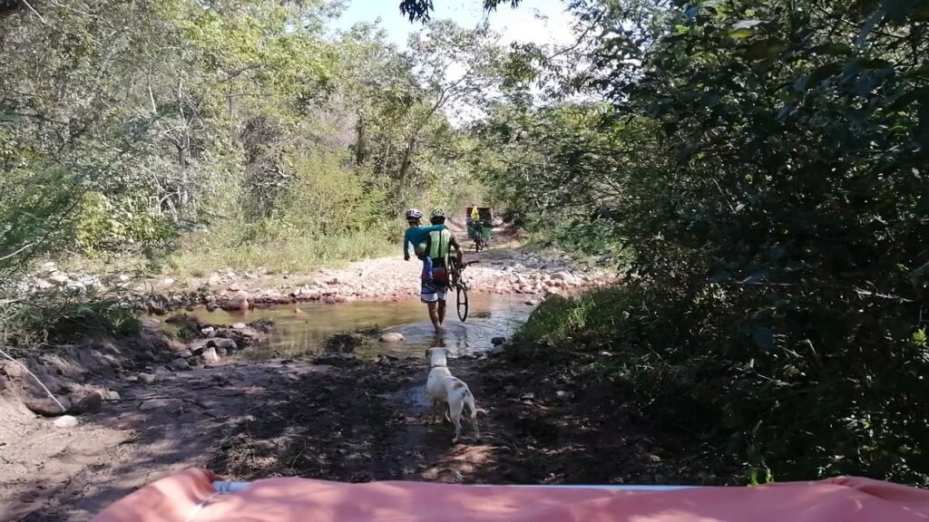 - Dois rios que tivemos de atravessar carregando as bicicletas.