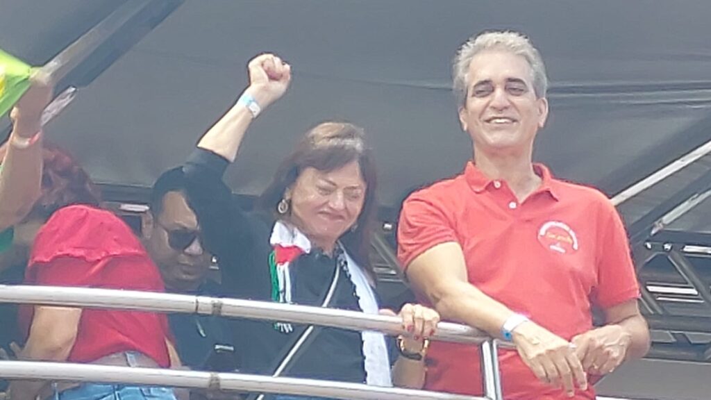 Alice Portugal (PCdoB-BA) e Daniel Almeida (PCdoB-BA) na Manifestação em Salvador 21/09/2025 – Foto: Marcos Mota