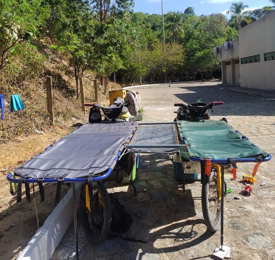 Diante desses desafios, portanto, buscamos também praticidade para carregar nossa bagagem. Foi assim que nasceu a ideia de transformar a bicicleta em uma verdadeira casa sobre rodas.