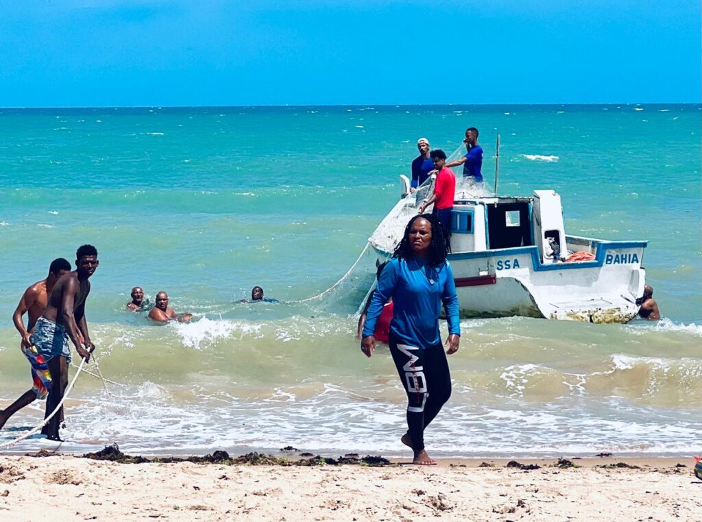 Além disso, Crislane leva consigo a experiência da Marcha Global das Mulheres Negras, em Brasília. Caminhou entre milhares, levou a voz da comunidade e voltou para Tairu com o espírito renovado. Hoje, a luta dela aparece tanto no puxar da rede quanto no corte do peixe fresco.