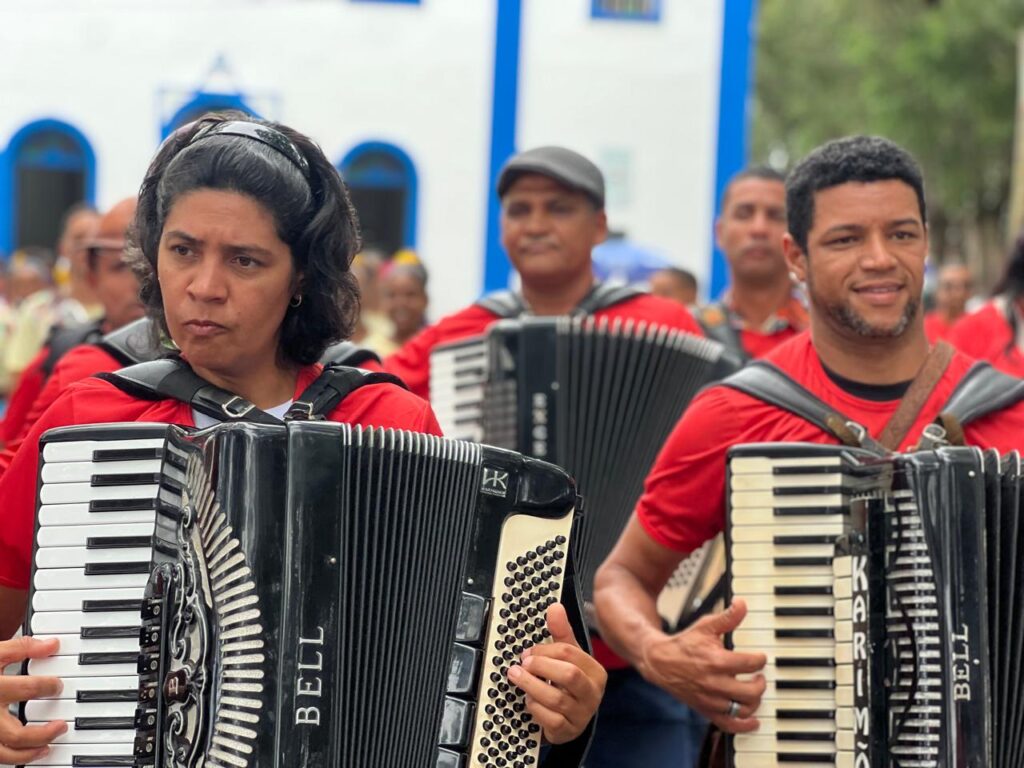 Idealizadora da Procissão dos Sanfoneiros, o evento chegou à sua quinta edição, realizada no último sábado, 06, em Cruz das Almas. A programação seguiu com missa, procissão e apresentações musicais de Flor de Imbuia, Mateuzinho do Acordeon, Zé Araújo, Gata Morena, André Barreto. Entre outros artistas, que fortalecem o forró tradicional.