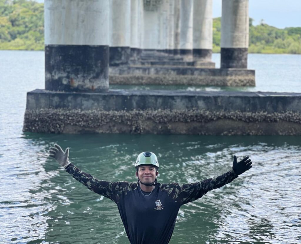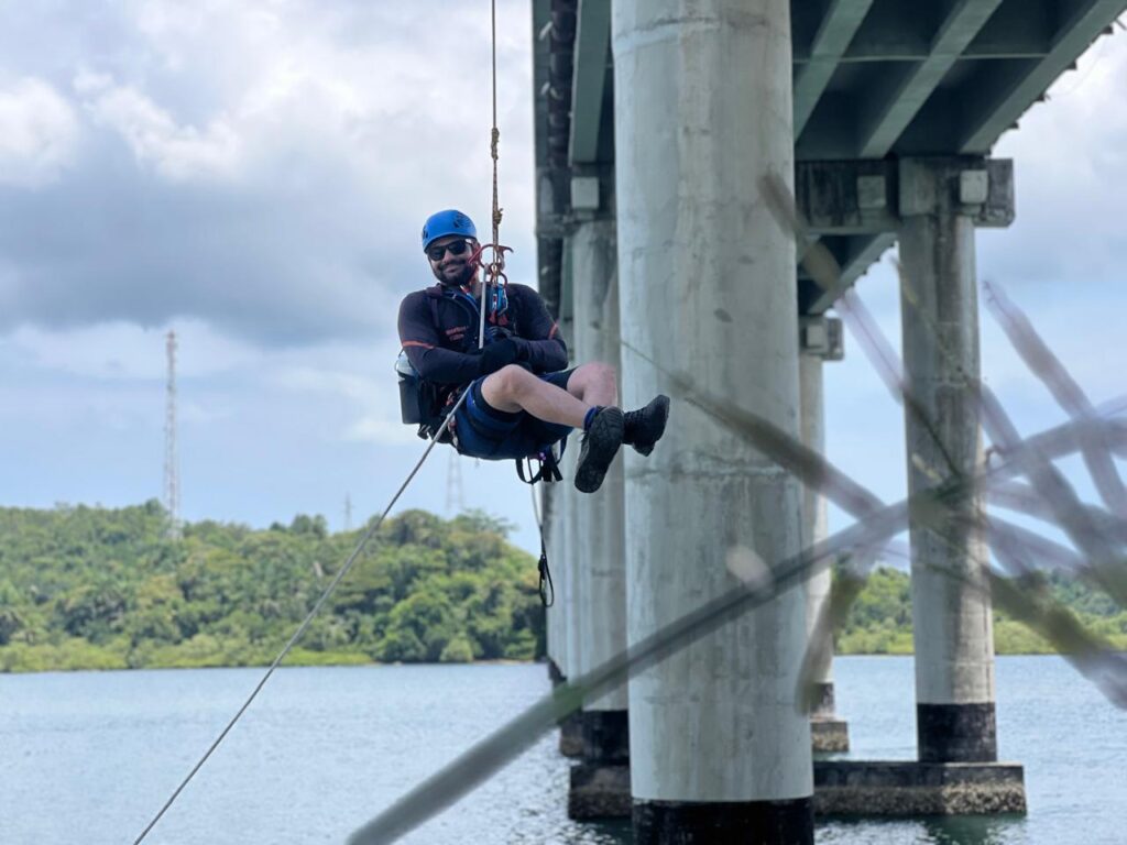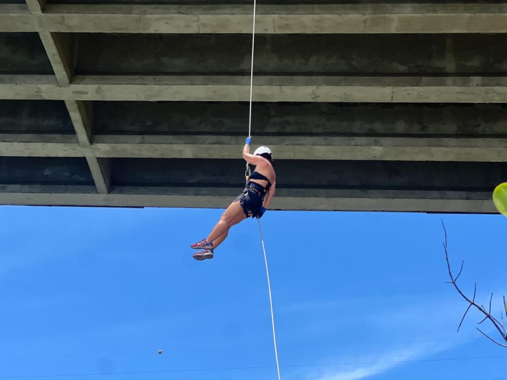 Afinal de contas, quem não gostaria de olhar a Ponte do Funil de um ângulo melhor? Vista de longe, ela já impressiona. De perto, impõe respeito. No entanto, é quando o corpo se desprende do chão e fica pendurado sob sua estrutura que o cenário ganha outro significado, mais intenso, íntimo e, acima de tudo, desafiador.