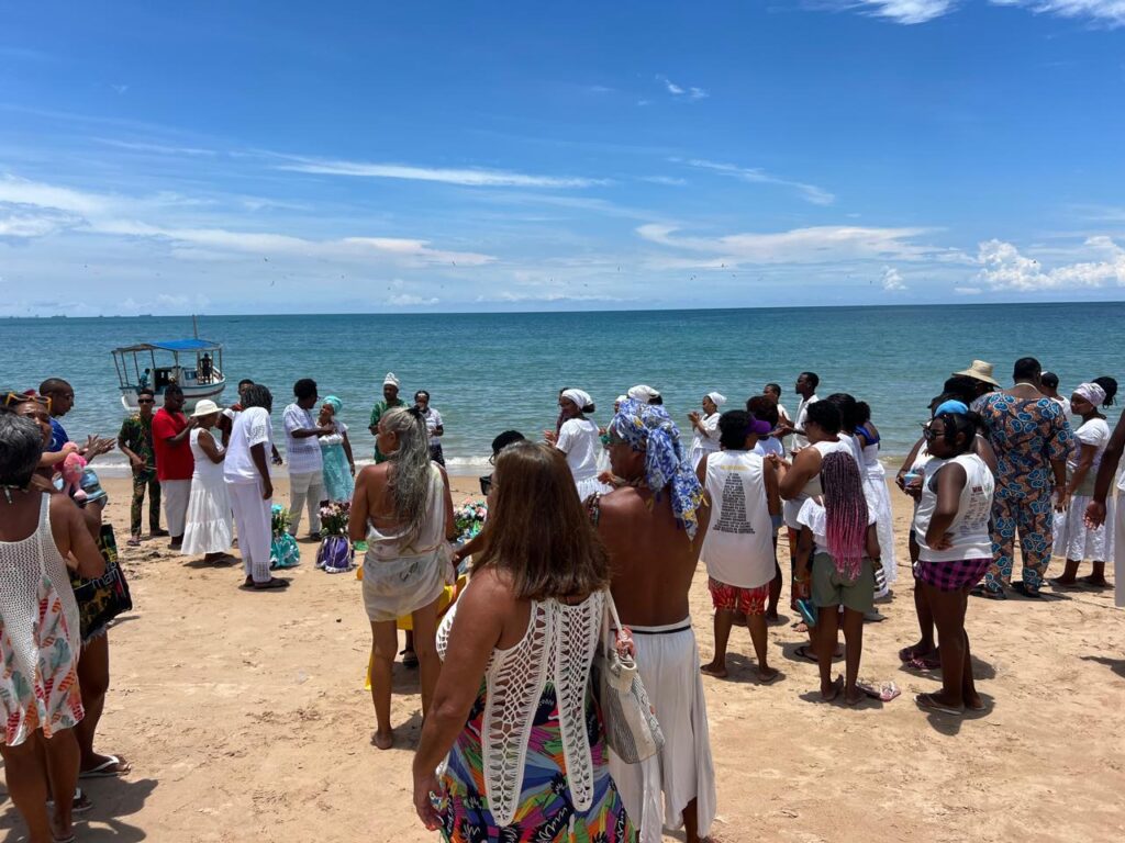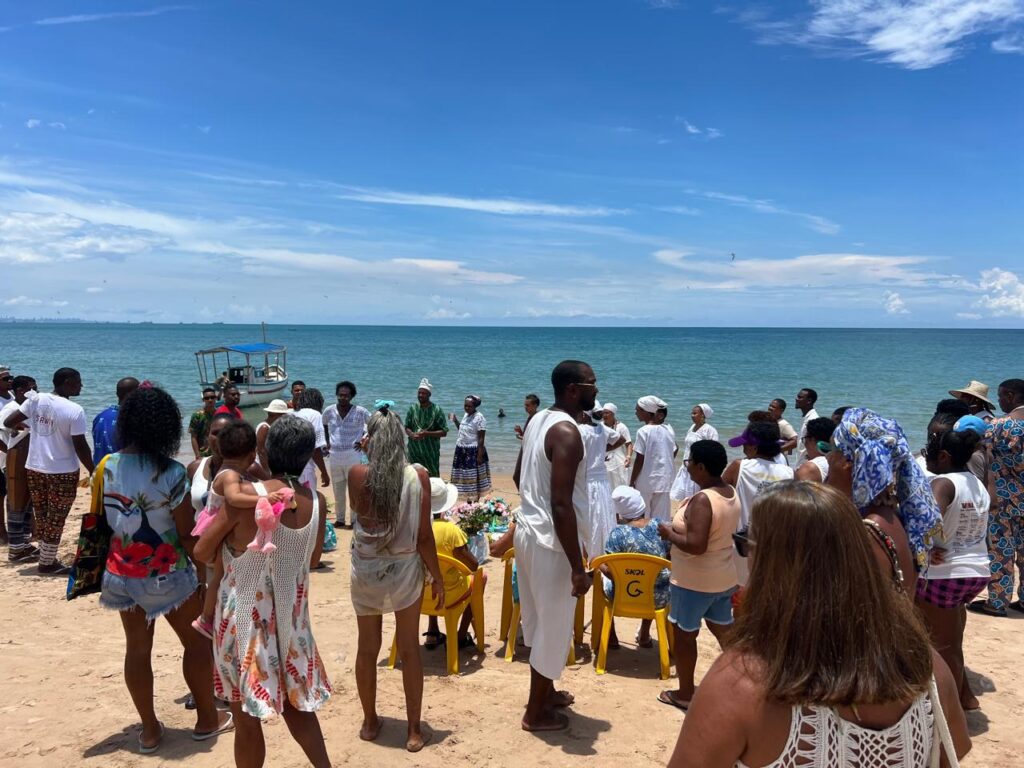 Durante o cortejo até a praia, flores, arranjos e gestos de carinho marcaram o caminho. O ritual contou com a presença de caboclos ligados à terra e à natureza, reafirmando a forte relação do candomblé com os povos originários e com o cuidado ambiental.